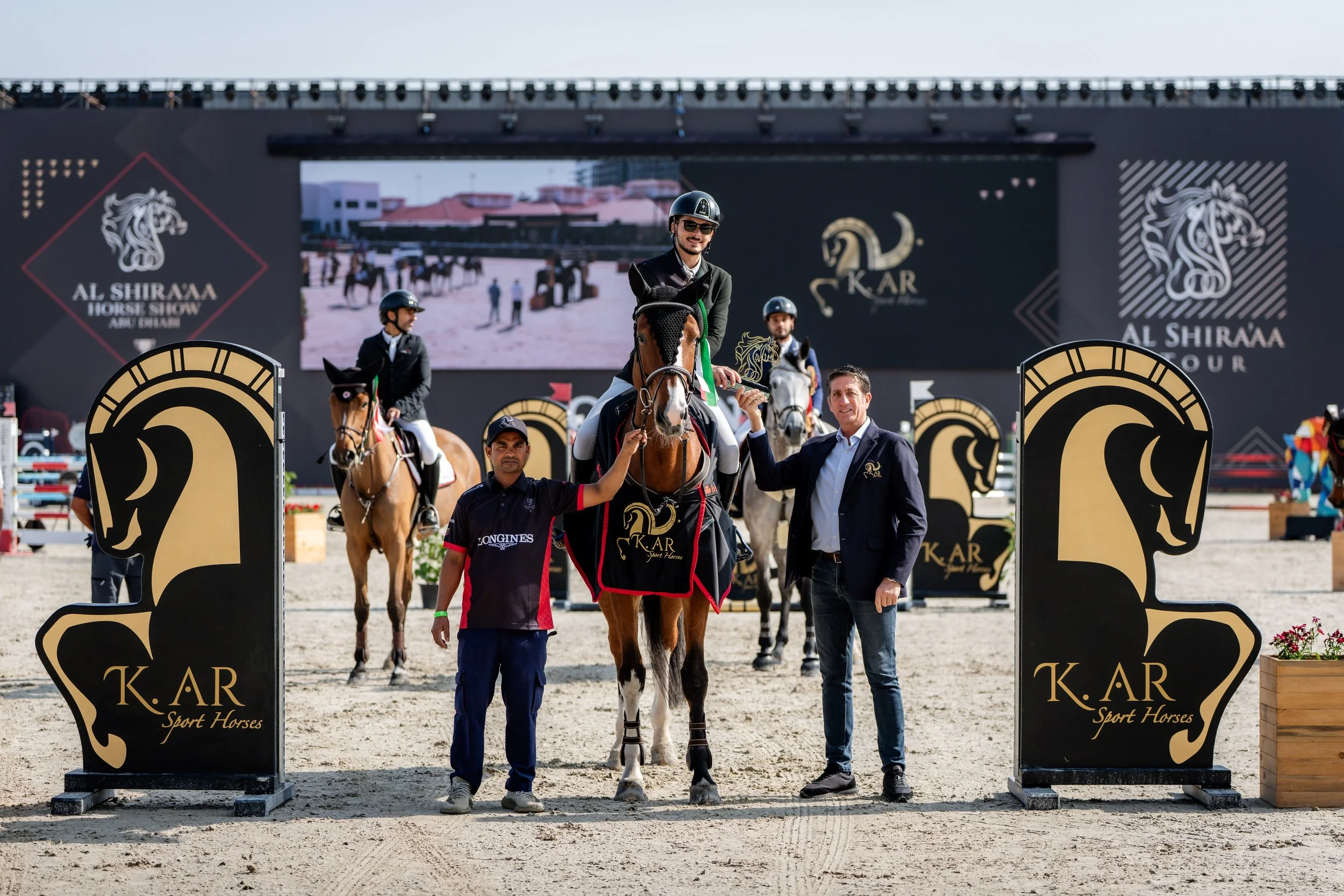Attention then turned to the CSIYH1* classes, presented by K.AR Sport Horses, with both the 6-year-old and 7-year-old divisions taking centre stage. In the 6-year-old class, Syrian rider Osama Al Zabibi impressed aboardTabaluga BL to take the win, while Saif Owaida Mohammed Alkirbi claimed second place – and his second podium spot of the day – riding Pink Floyd V&V. Salim Khamis Al Suwaidi and Sharjah Equestrian & Racing Club’s Doubel Ble completed the podium in third place.