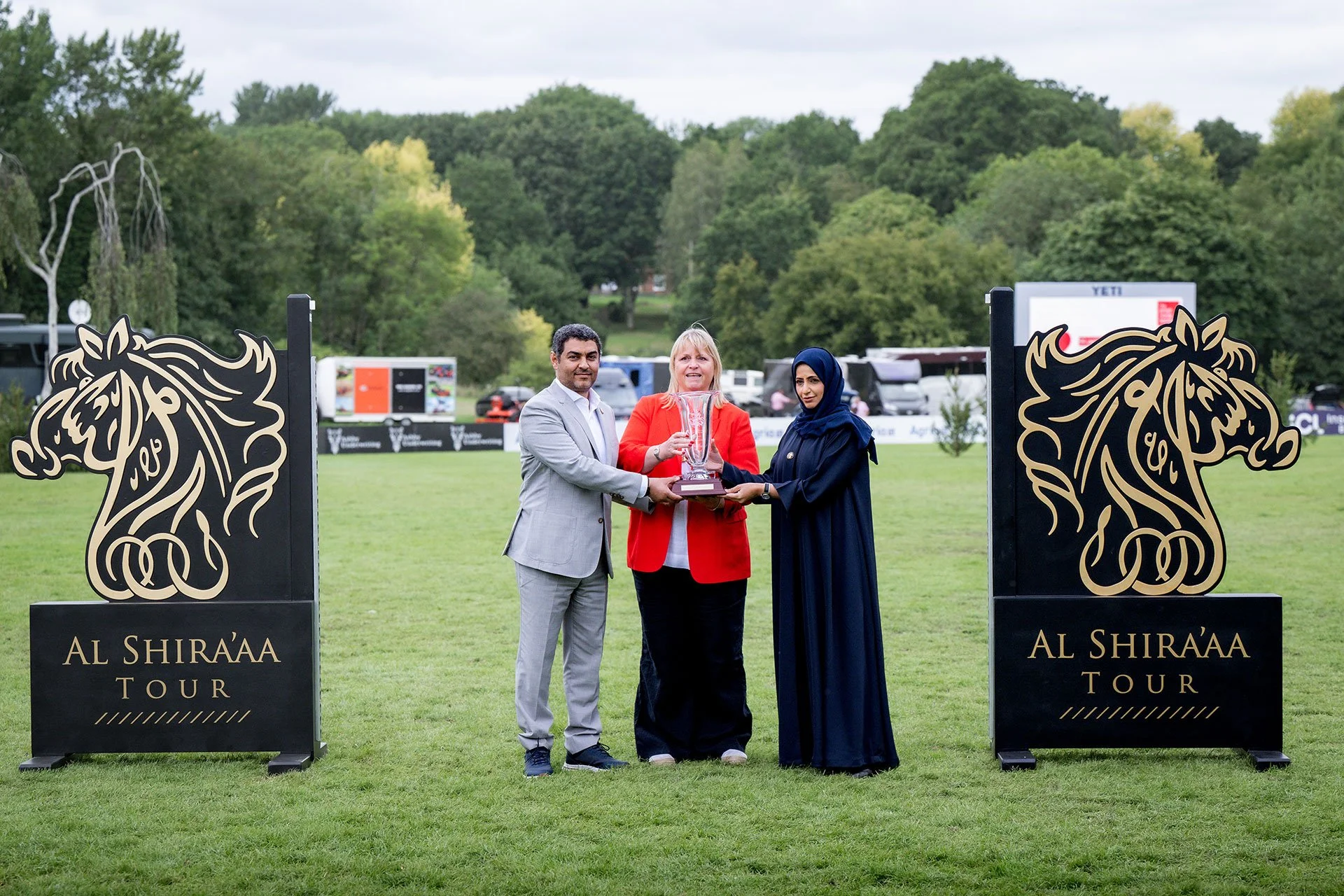The award was presented by Lizzie and Edward Bunn, Directors of Hickstead, and received on behalf of HH Sheikha Fatima by HE Mohamed Ahmed Al Harbi, representative of Her Highness, and Khaula Al Nuaimi, Head of Protocol for HH Sheikha Fatima.